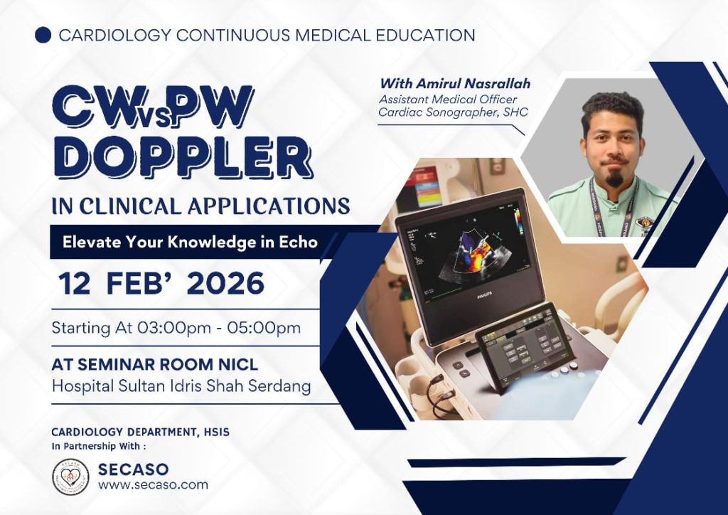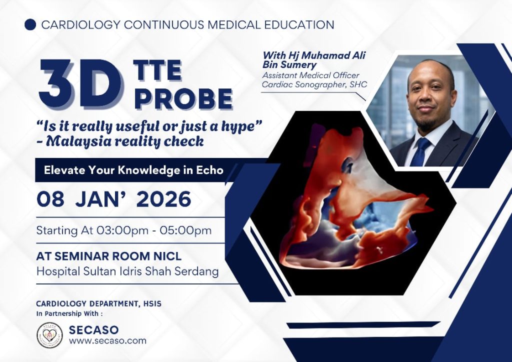 As part of our ongoing contribution to the cardiac sonographer community in Malaysia—especially in Selangor—SECASO is proud to introduce a free Continuing Medical Education (CME) platform at Hospital Sultan Idris Shah, Serdang, starting in 2026.